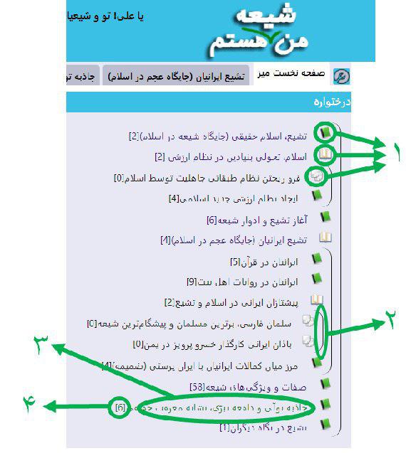 با کلیک کردن روی آیکن کتاب بسته (سبز رنگ) قلابی زیر شاخه مربوطه باز میشود و در داخل آن زیر مجموعه شاخه مربوطه نمایش داده میشود.