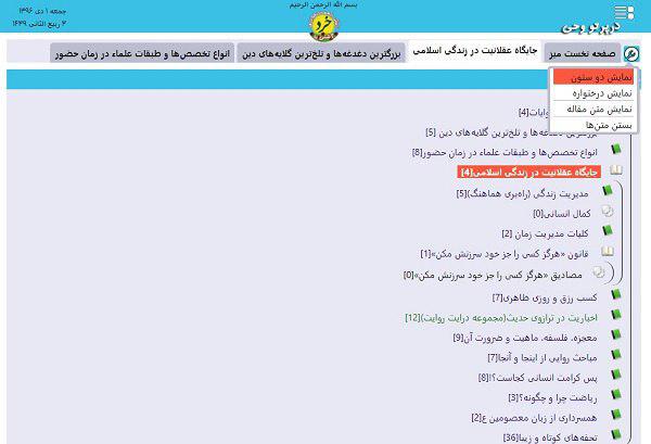 حالت دوم مطالعه، بستن متنها و نمایش سرفصلهای زیرمجموعه انتخاب شده است. (تصویر شماره 4)