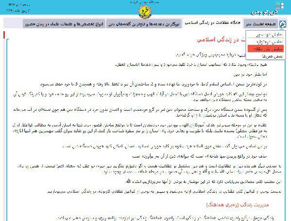 اما عملکرد گزینه سوم دقیقا بر عکس گزینه دوم است. یعنی با انتخاب «نمایش متن مقاله»، درختواره پنهان شده و تنها ستون متن مقاله نمایش داده می‌شود. (تصویر شماره 3)